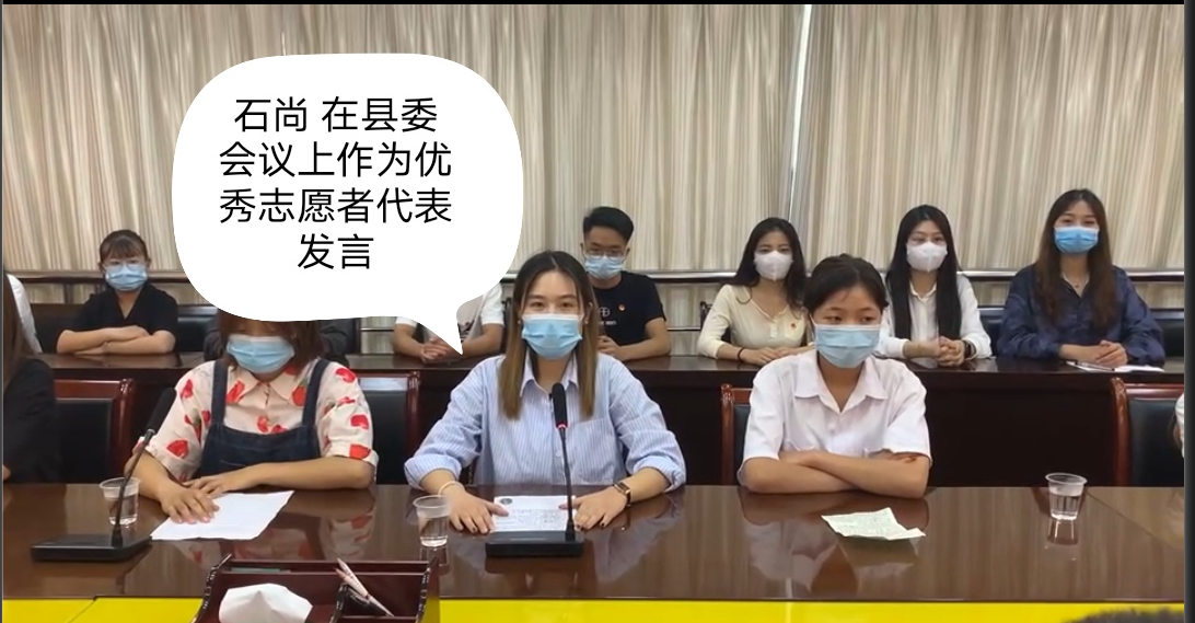 当听说家乡召集志愿者的时候,石尚直接报了名。经过乡政府的集体培训之后,她接受书记分配的工作--负责乡镇疫情防控宣传报道。自8月15日,石尚每天按时到乡政府报道,为乡政府写宣传材料、在卫生院维持秩序、下乡进行疫苗接种入户宣传。为疫情防控增添力量,也为自己的社会实践添上了重要的一笔。期间,石尚选为马庄乡优秀志愿者代表,在叶县团委会议上作为代表发言。