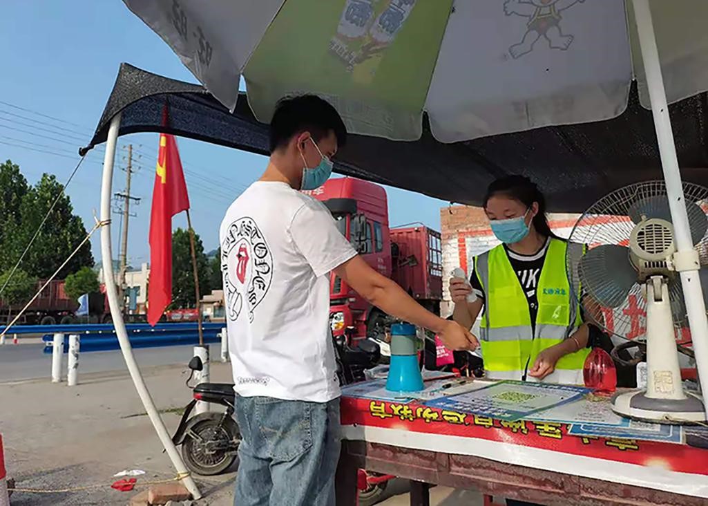 从8月2日至8月16日,她所在的社区木城镇余原村进行封闭式管理,进出都要扫码登记。社区里难免会有上了年纪的老人,他们没有智能手机,所以每次进出都需要她在本上登记信息。天气炎热,工作中她注意到会有带小孩的老人有些着急,她会主动让老人坐在板凳上休息。对于一些还没有意识到疫情严重而没有佩戴口罩的村民,她会主动分发口罩并劝说村民非必要不外出,确需出门时也一定要带好口罩做好防护;其中不乏有路过郑州或从郑州返回的村民,在她的解释下也都如实上报,积极配合工作做核酸检测。