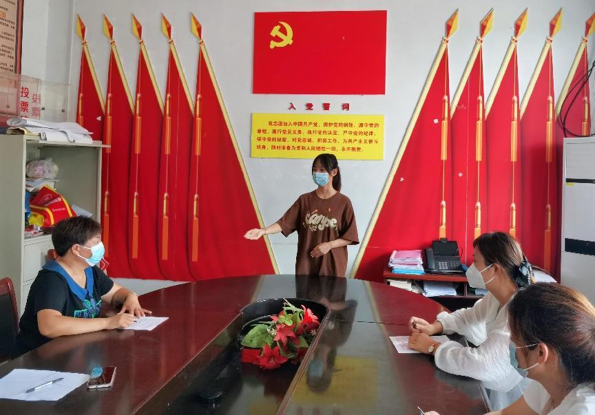 2020级学生党员袁源在舞钢市尚店镇丁庄村委会对部分村民进行了宣讲。她围绕村里的疫情防控工作和便民服务工作向村民们讲述了蕴藏着党的力量的家乡故事。