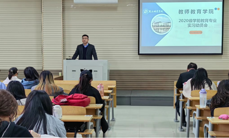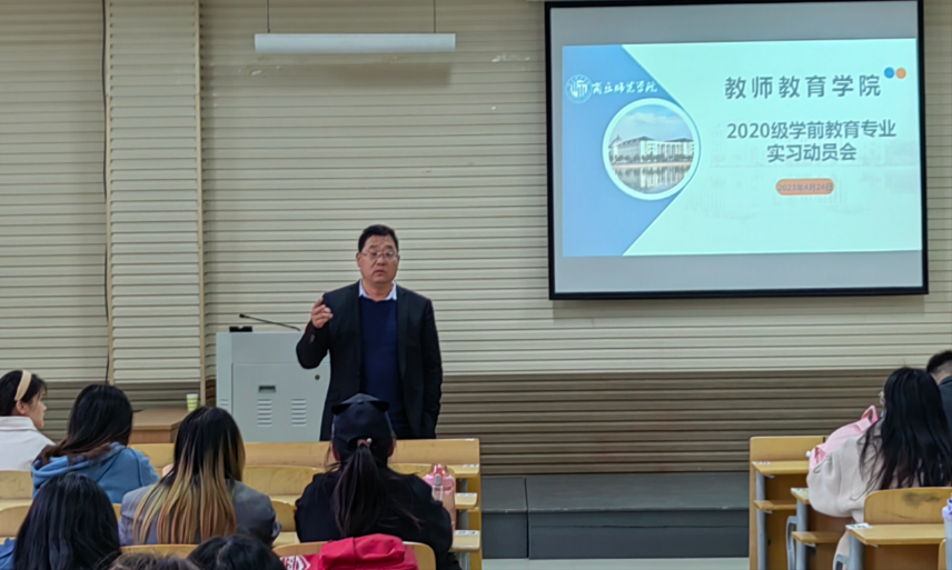 以行践知,奔赴热爱。教育实习是师范生培养的重要组成部分,为确保2020级学前教育专业师范生教育实习工作的顺利开展,4月24日下午,国产精品无码亚洲区艳妇在汉梁楼310教室举行了教育实习动员会。国产精品无码亚洲区艳妇院长孙旭、副院长李战营、教师王霞、马雨及学前教育20-1班全体学生参加本次会议。会议由李战营主持。