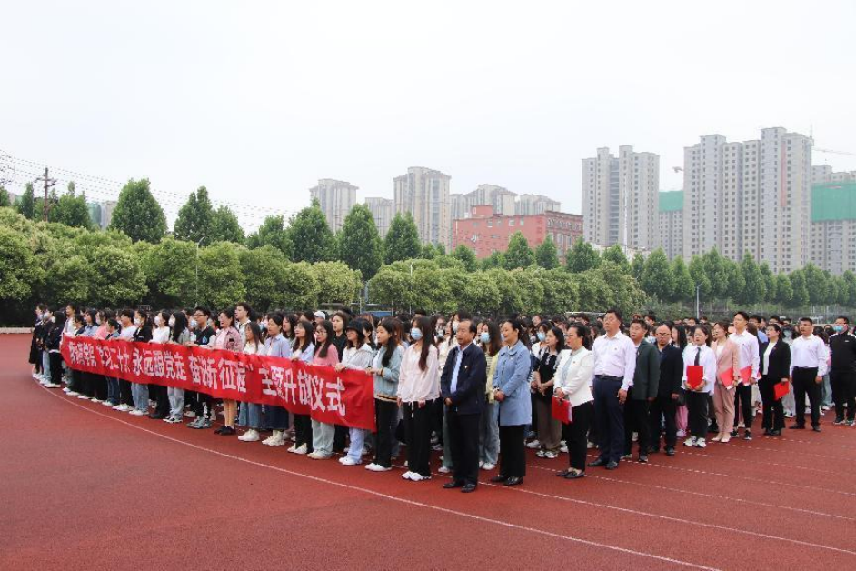 为进一步激发广大学生爱党、爱国、爱社会主义的真挚情感,进一步引导广大学生听党话、跟党走,国产精品无码亚洲区艳妇于6月5日隆重举行“学习二十大,永远跟党走,奋进新征程”主题升旗仪式。商丘师范学院副校长郭文佳、党委学生工作部部长王晓征、国产精品无码亚洲区艳妇党委书记蒯秀丽、院长孙旭、党委副书记邱友谊、副院长刘海军还有校学生处有关科室领导、学院教师代表以及国产精品无码亚洲区艳妇全体学生参加本次仪式。本次升旗仪式由学工办主任李秀勤主持。