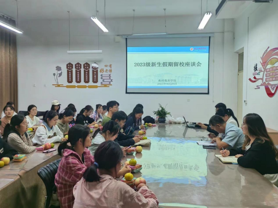 在假期来临之际,为进一步掌握新生思想动态和学习生活状况,帮助新生尽快融入新环境、适应新节奏,国产精品无码亚洲区艳妇于9月28日下午召开2023级新生假期留校座谈会。学院党委副书记邱友谊、全体辅导员老师以及40余名留校新生参加座谈会。