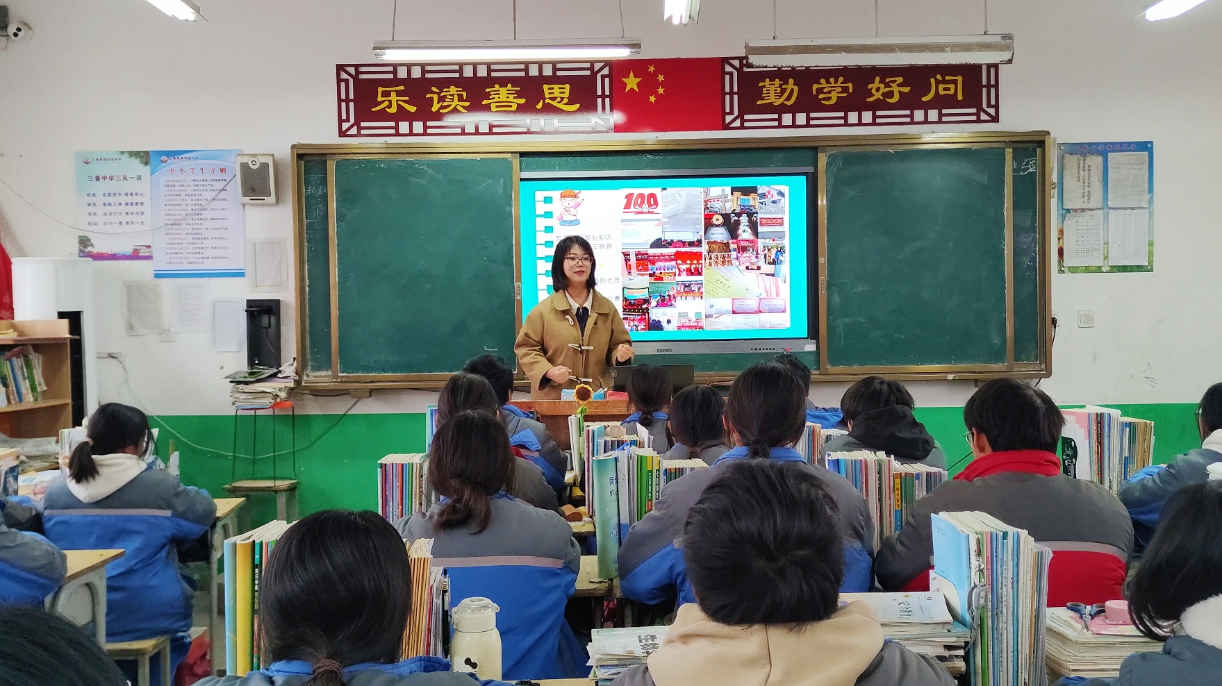 2022级学生干部许梦鑫回到母校东明县三春集镇初级中学,为8年级学生讲述自己的学习经历与大学生活,希望同学们珍惜大好时光,保持奋斗者的姿态,引导学生永怀爱国之心,励志勤学,努力成为可堪当民族复兴大任的时代新人。