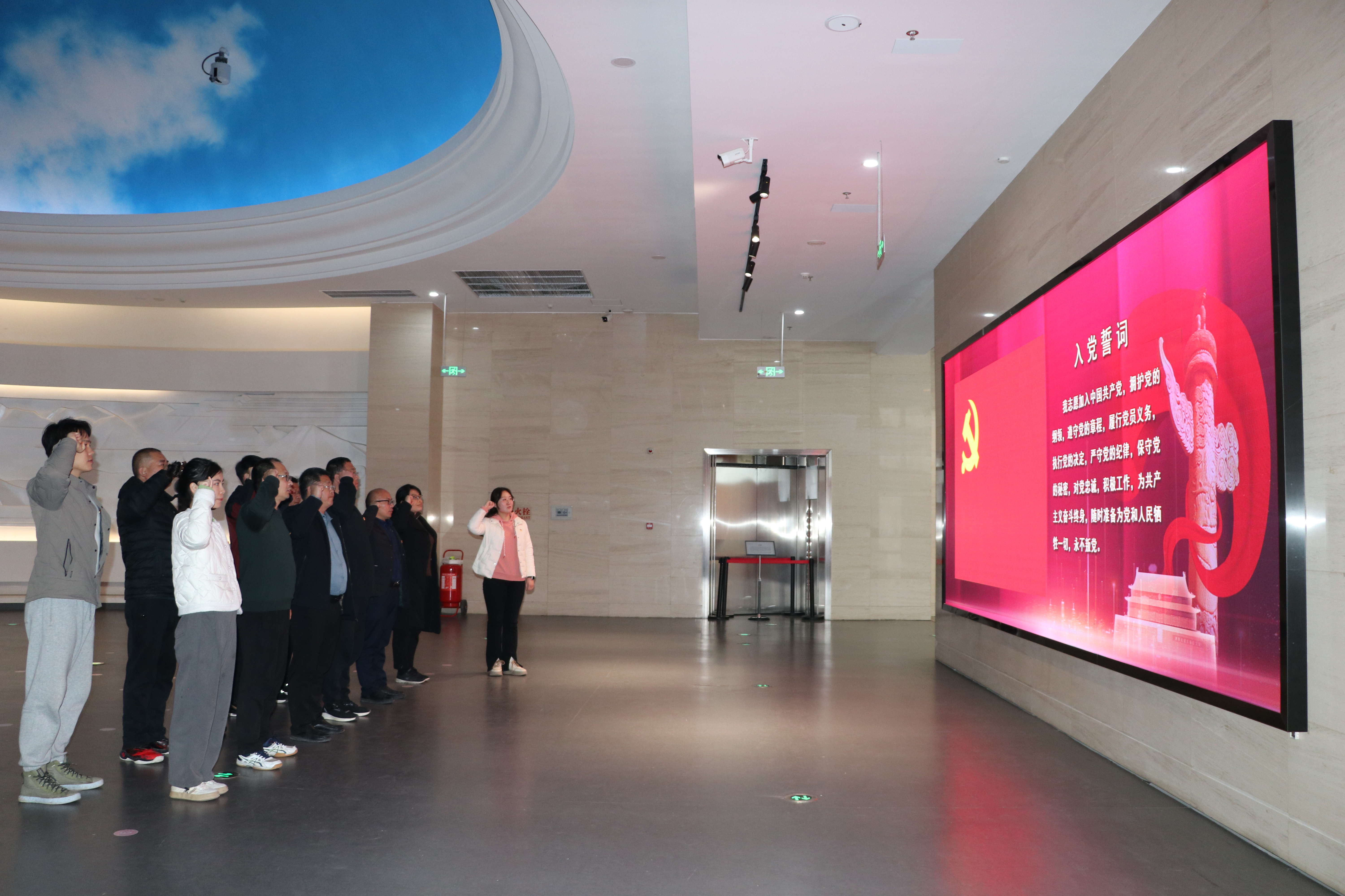 参观结束后,全体党员同志面向鲜红的党旗,高举右拳,重温入党誓词,铮铮誓言表达出我院教师党员深切的爱党爱国情怀,今后定会将其转化为推动教育事业发展的强大动力。