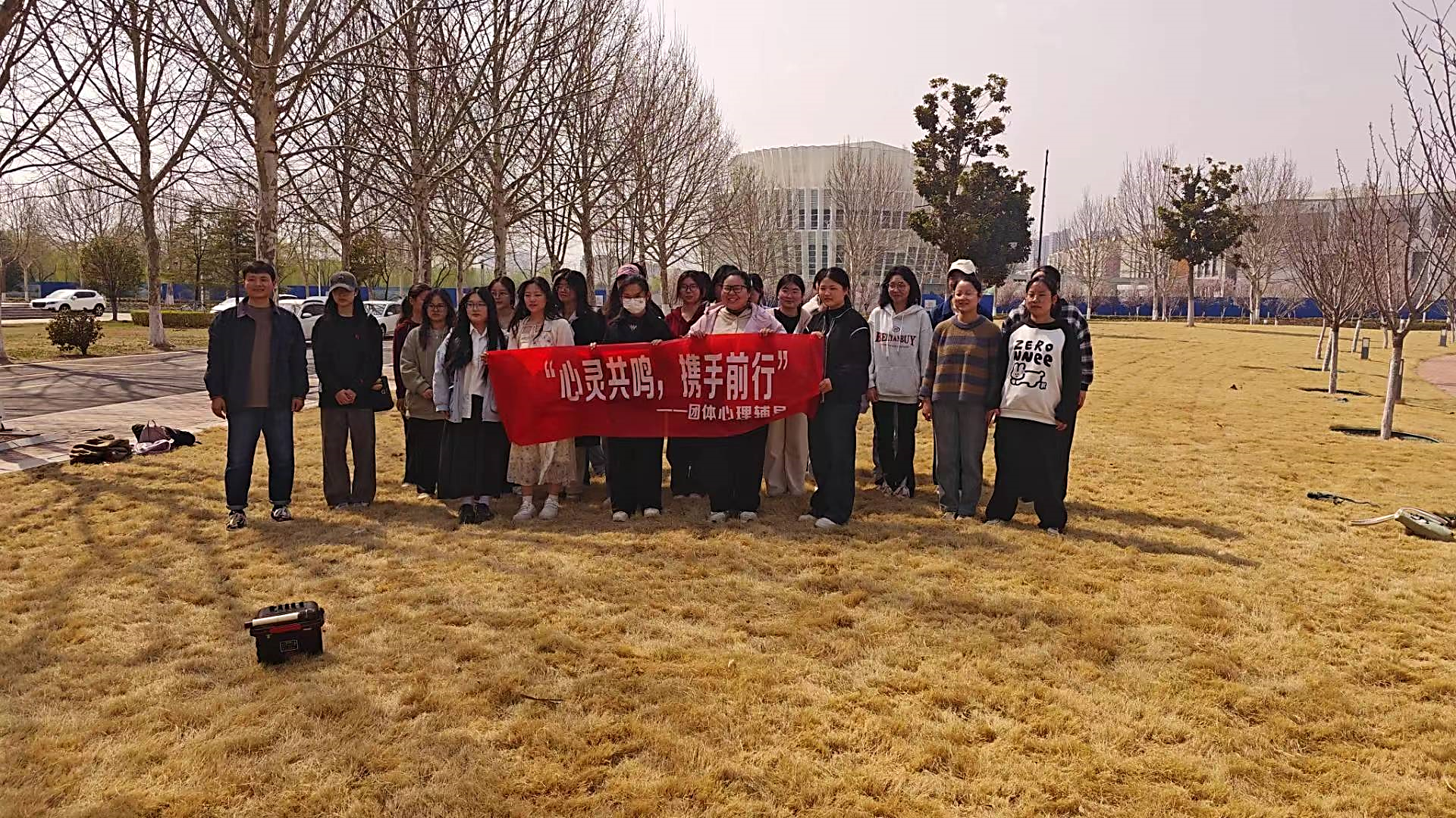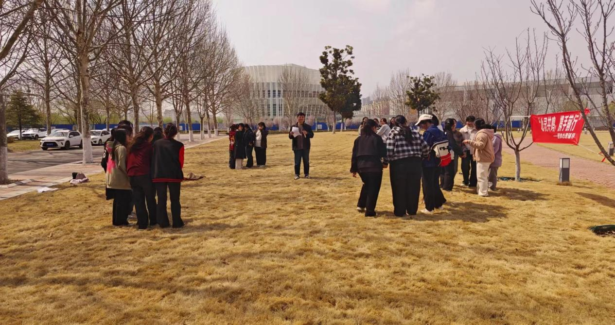 为营造安全文明和谐的校园氛围,提高学生心理健康素养,增强沟通协作能力,3月22日,大学生心理协会在汉梁楼北侧草坪举办“心灵共鸣,携手前行”的团体心理辅导活动。