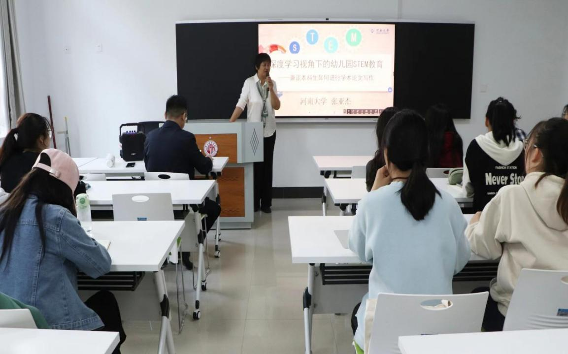 4月17日,河南大学教育学院学前教育系主任张亚杰老师应邀为国产精品无码亚洲区艳妇学前教育专业师生做题为“深度学习视角下的幼儿园STEM教育——兼谈本科生如何进行学术论文写作”的学术报告。本次报告由国产精品无码亚洲区艳妇副院长李战营主持,学前教育专业学生和部分教师参加。