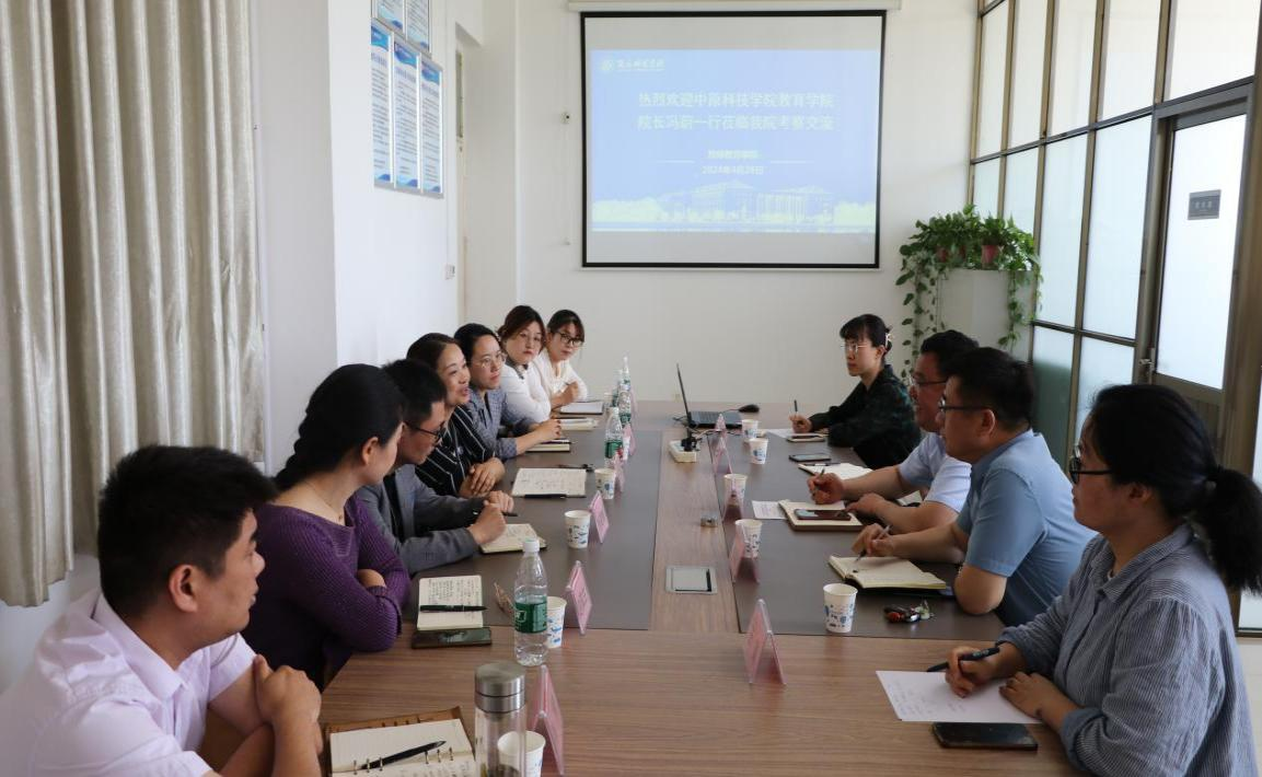 随后,双方在我院201会议室进行交流座谈。院长孙旭首先向客人介绍了学院发展概况及在专业建设、师范生成长工作坊等方面主要做法及成效。随后,冯蔚院长介绍了中原科技学院教育学院的发展历史、办学宗旨及办学成效。最后,双方就人才培养定位及特色、学科及专业建设、实训室建设、师范生实习实践、师范生成长工作坊的建设等方面进行了深入交流。