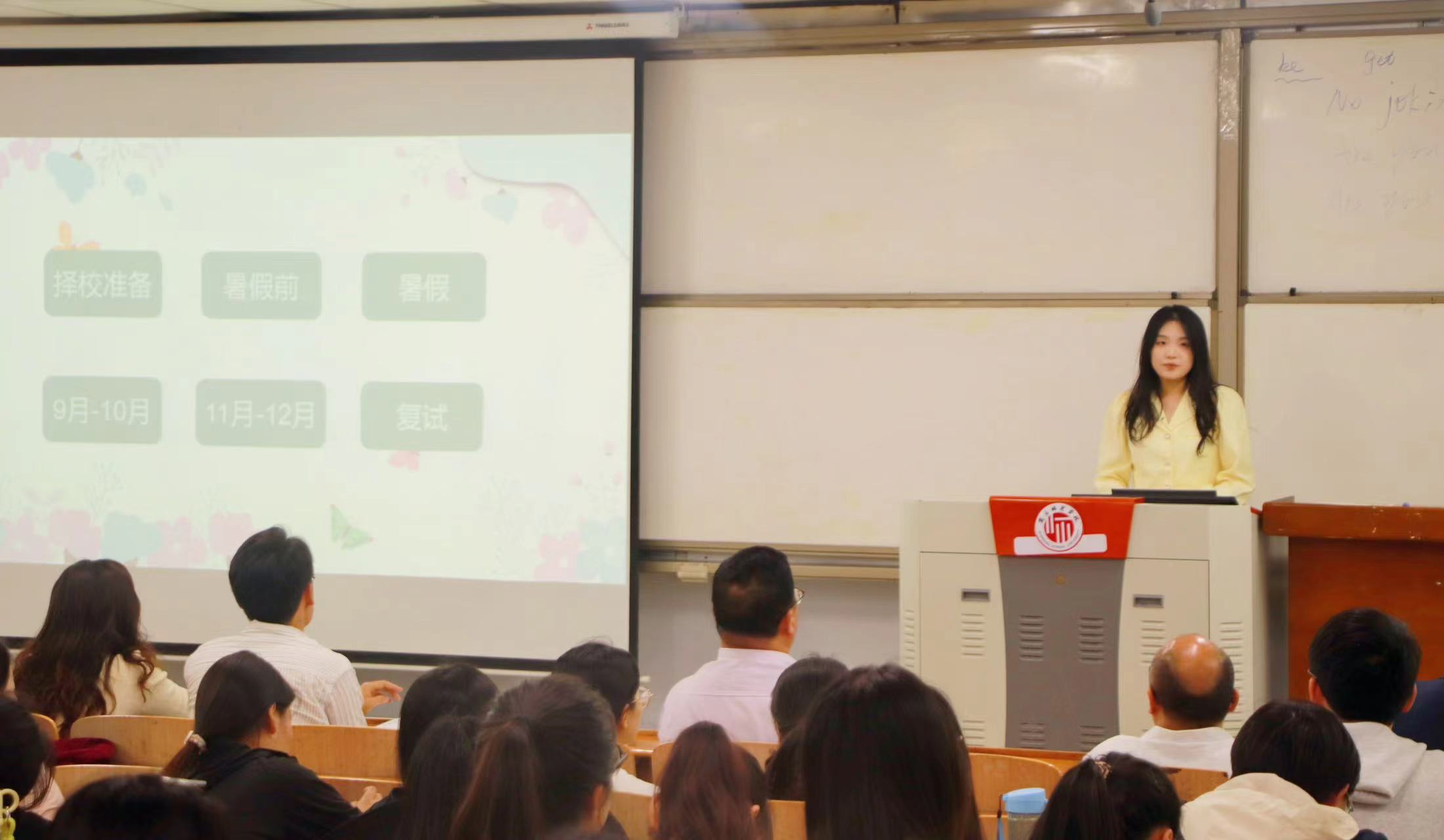 随后,9位成功上岸的同学进行了经验交流分享。他们在择校思路、专业选择、学习策略、备考建议、心态调整、常见误区等方面进行全面总结,同时表达了对学院各位老师的感激之情。