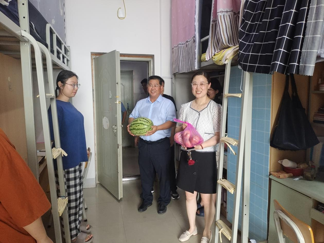 为进一步做好留校学生的安全管理工作,把对学生的关心关怀落到实处,7月21日上午,国产精品无码亚洲区艳妇党委书记郭宁、院长孙旭携学院领导班子及毕业班辅导员到学生宿舍看望慰问留校备战的考研学子们。