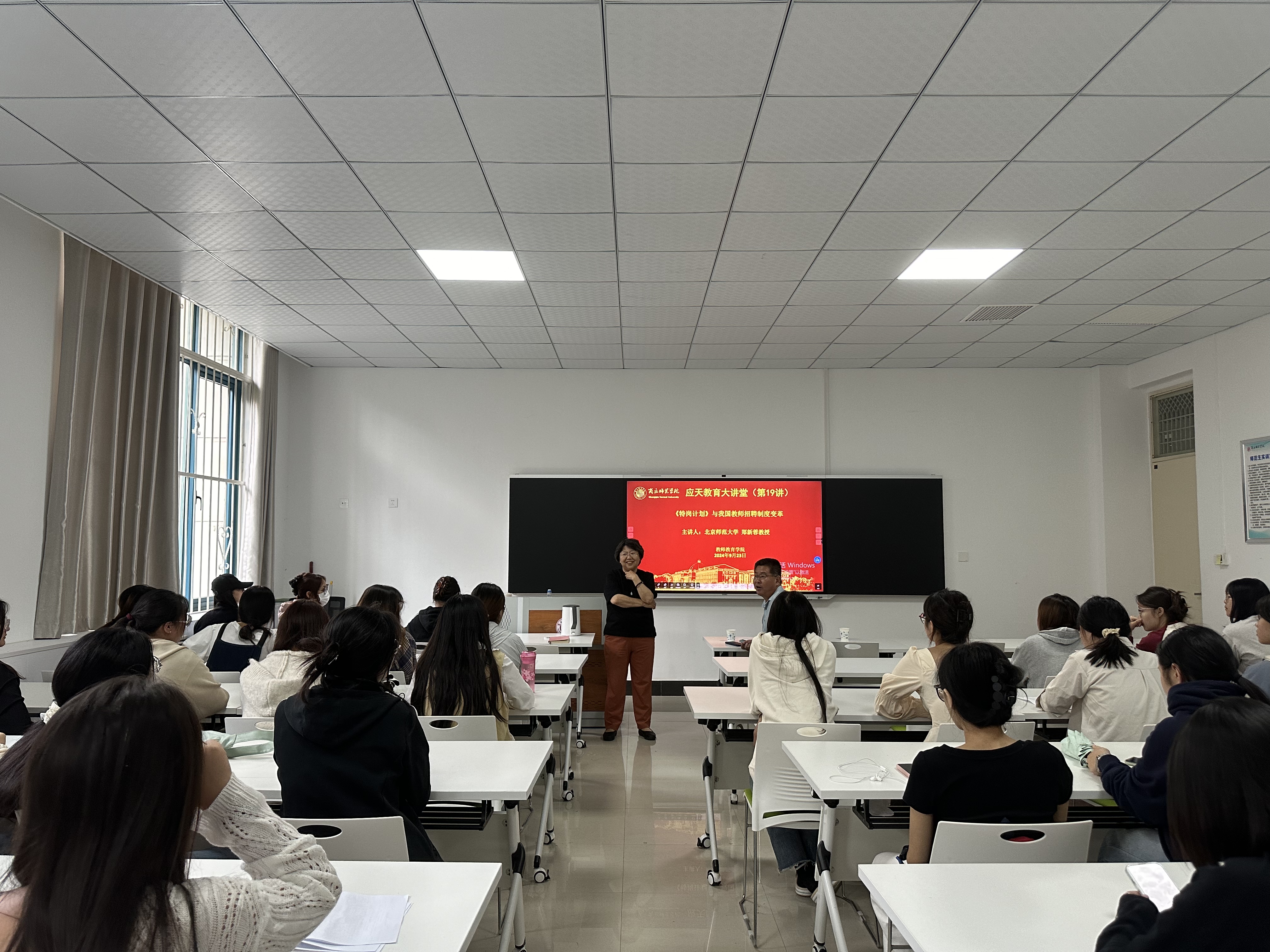 2024年9月23日,国产精品无码亚洲区艳妇有幸邀请到北京师范大学郑新蓉教授,于汉梁楼112室为全体师生带来了一场精彩的专题讲座。本次讲座以“《特岗计划》与我国教师招聘制度变革”为主题,吸引了众多师生的积极参与。讲座由国产精品无码亚洲区艳妇党委副书记邱友谊主持。