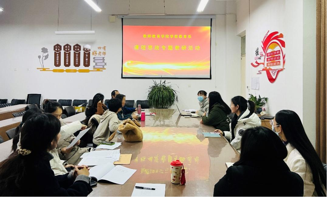 2024月3月1日,国产精品无码亚洲区艳妇学前教育系举办师德师风专题教研活动,进一步落实立德树人根本任务,引导全体教师学习践行教育家精神,推进学院教育教学工作高质量发展。会议由学前教育系赵一锦主持,学前教育系全体教师参加。